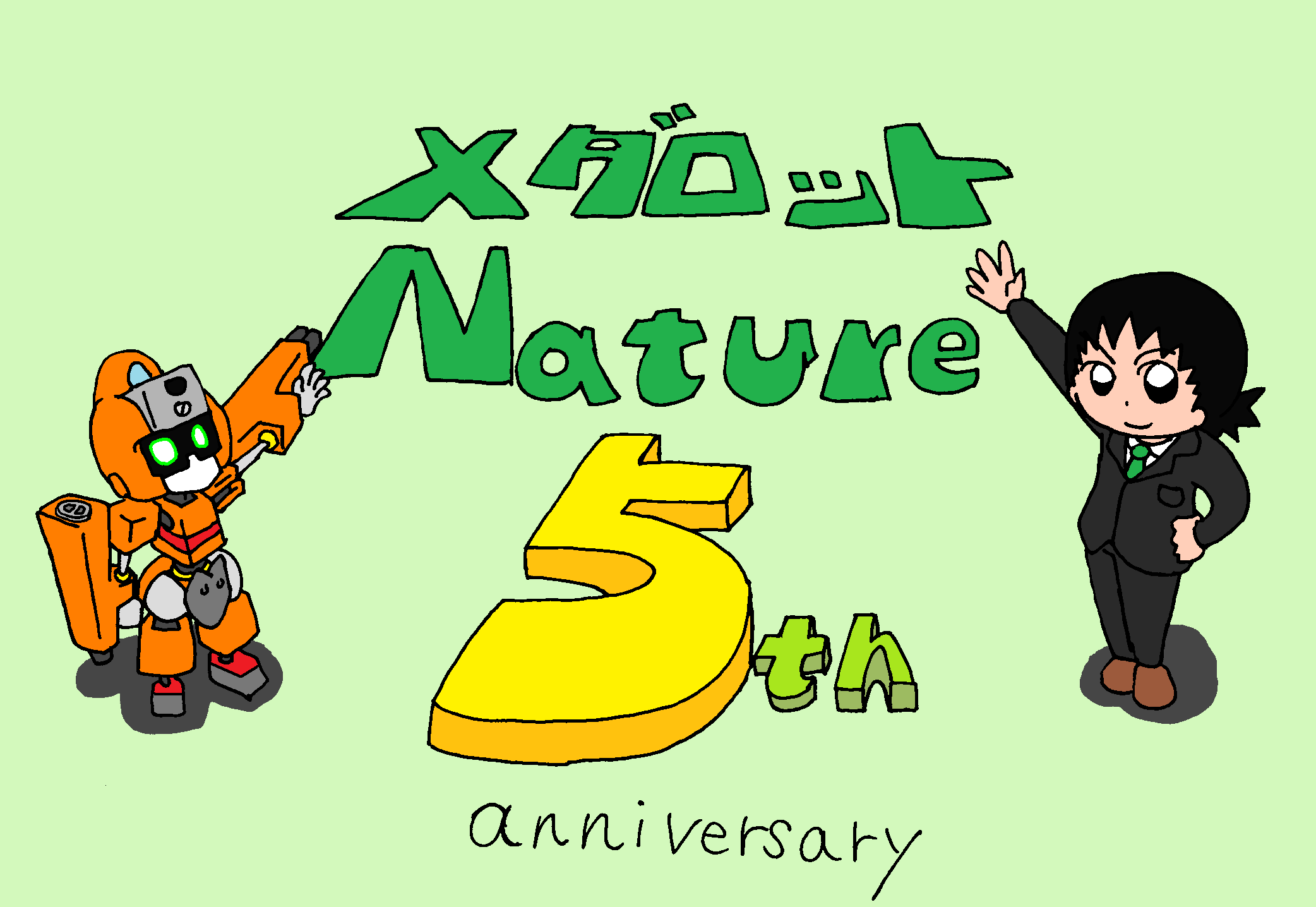 とうとうやってまいりました! メダロットNature 5周年! 月日が経つのは早いものですね~。 さてさて、ではでは、 5周年企画その1! ☆Natureキャラ大体全員集合おやすみ絵! http://www.pixiv.net/member_illust.php?mode=medium&illust_id=36049383 こちらはツイッターで約1か月間、毎晩就寝前に投稿していたものを まとめたものです。おなじみのあんなキャラやこんなキャラ、 久しぶりなあんなキャラこんなキャラが 白黒ですが勢ぞろいです。 5周年企画その2! ☆メダロットNature Q話公開開始! Part1:http://www.nicovideo.jp/watch/sm21006022 久しぶりの長編新作となる予定のこちらの作品。 NFまで進めてまたNature?と思われるかもですが 5周年ですし、多目に見てください。 続きはでき次第随時更新していきます。 ツイッターやピクシブ、こちらのブログでも告知していきますので お見逃しのないように!! 5周年企画その3! ☆メダロットNatuRE 制作!(これは予告) 5周年を記念して、メダロットNatureを描きなおしてみます! (画像:ジャケット予定画像途中) 【プレスリリース】 メダロットNatuRE 媒体:DVD お値段:300円(仮) 販売予定数:約20枚 ☆メダロットNature一期を全編描き直し!(ストーリーはそのまま) ☆多数の追加場面! ☆豪華特典の数々! 特典①:描き下ろし新作『メダロットNature E話』収録 特典②:豪華メダロッター陣による5周年お祝いイラスト! 特典③:Natureキャラによる4コマミニブック付(仮) ※内容は変更されることがあります、予めご了承ください。 これは、11月開催と思われるメダロットオンリーイベントで 販売できればいいなぁと思っています。 これに際し特典②の募集を行います。 【募集】 メダロットNature5周年お祝いイラスト 対象:Natureやsohitのオリメダを少しでも愛してくれている人 内容:Natureシリーズ登場キャラ・メダなんでもOK! 細かな規定:Windows ムービーメーカーで動画を作る予定ですので それに適した画像サイズ・形式でお願いいたします。 jpeg,bmp,pngなどはOK見たいです。 「ムービーメーカー 使用可能形式」などで検索して確認してみてください。 報酬:描いていただいた方全員に特典②の動画ファイルを差し上げます。 たくさんの応募、お待ちしております。 いまのところの計画はこのような感じです。 みなさま、どうぞお付き合いください! おめでとう!メダロットNature! それでは、また!
